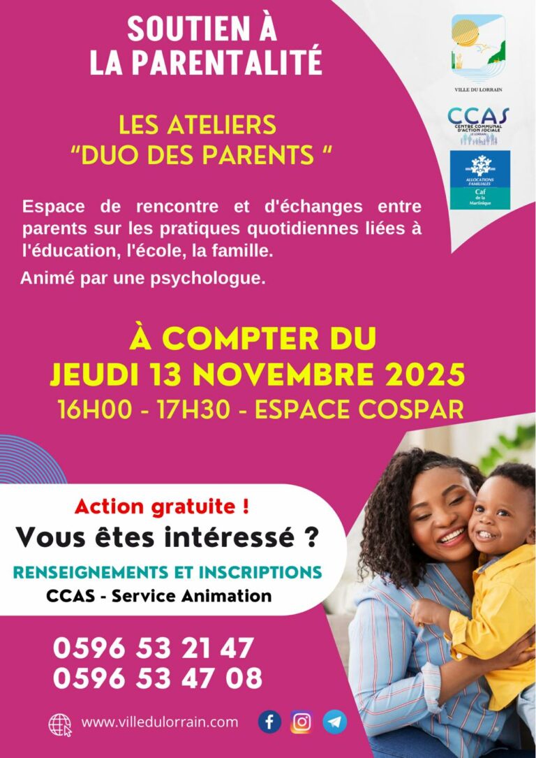 SOUTIEN A LA PARENTALITÉ - LES ATELIERS DUO PARENTS JEUDI 13 NOVEMBRE 2025